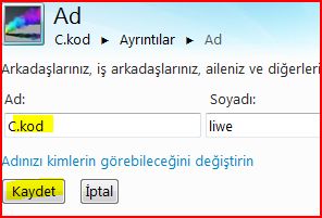 adınızı düzenleyin bölümüne tıkladınızmı