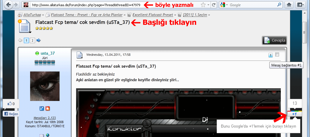 KONU LiNK'ini arkadaslariniza göndermeniz ve bu link'ten Google 1+ butonunun mümkün oldugunca cok kisinin tiklanmasini saglamaktir.
