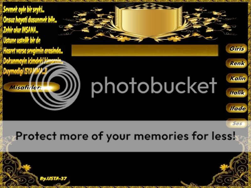 Ellerinize sağlık arkadaşım güzel bir tema olmuş.Sözleri seçtiğiniz yer gayet güzel yazıları engelleyemeyecek şekilde biraz daha chat çubuğundaki tonlamaya uysaydı birde dj adının yazılacağı yer oda chat çucuğundaki tonlamayla olsaymış bence tabiki ;)Tercih edileceği görüşündeyim,emeğinize paylaşımcı yüreğinize teşekkürler :thumbup: ***